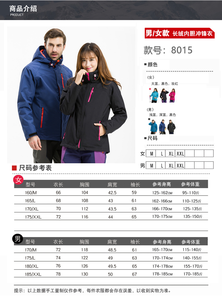 秋冬季户外登山骑行服情侣款冲锋衣防寒防风加绒保暖滑雪服印logo