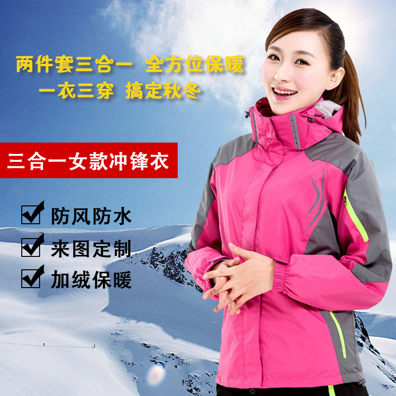 冬季防寒加绒冲锋衣三合一可拆卸户外服登山服刺绣印LOGO工装外套