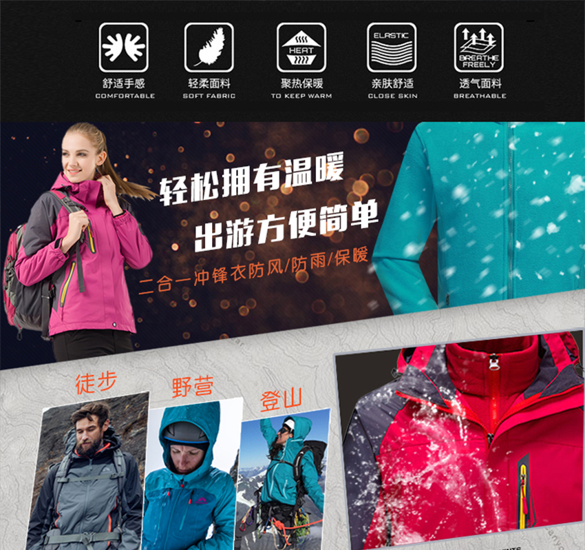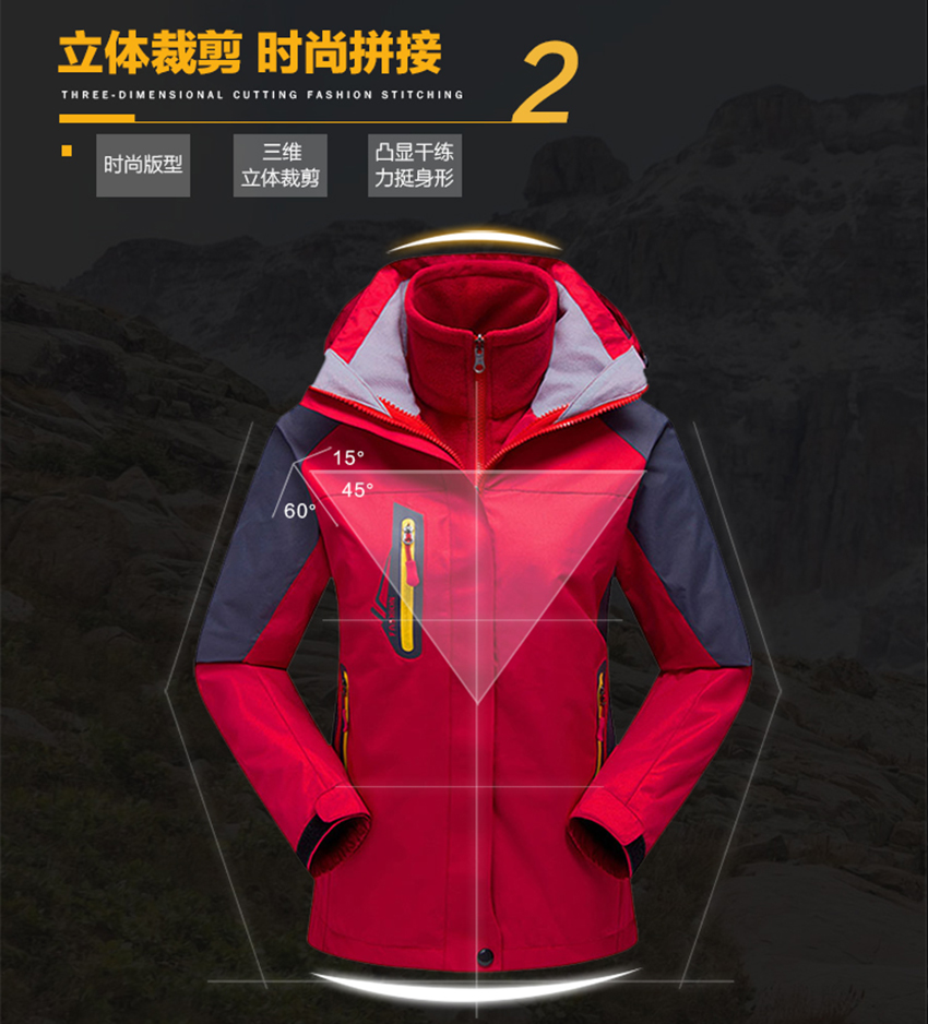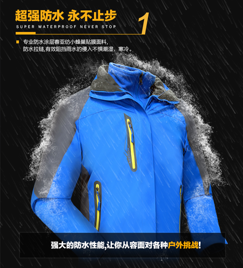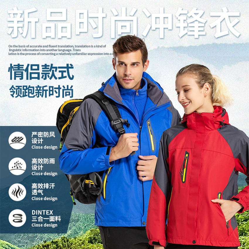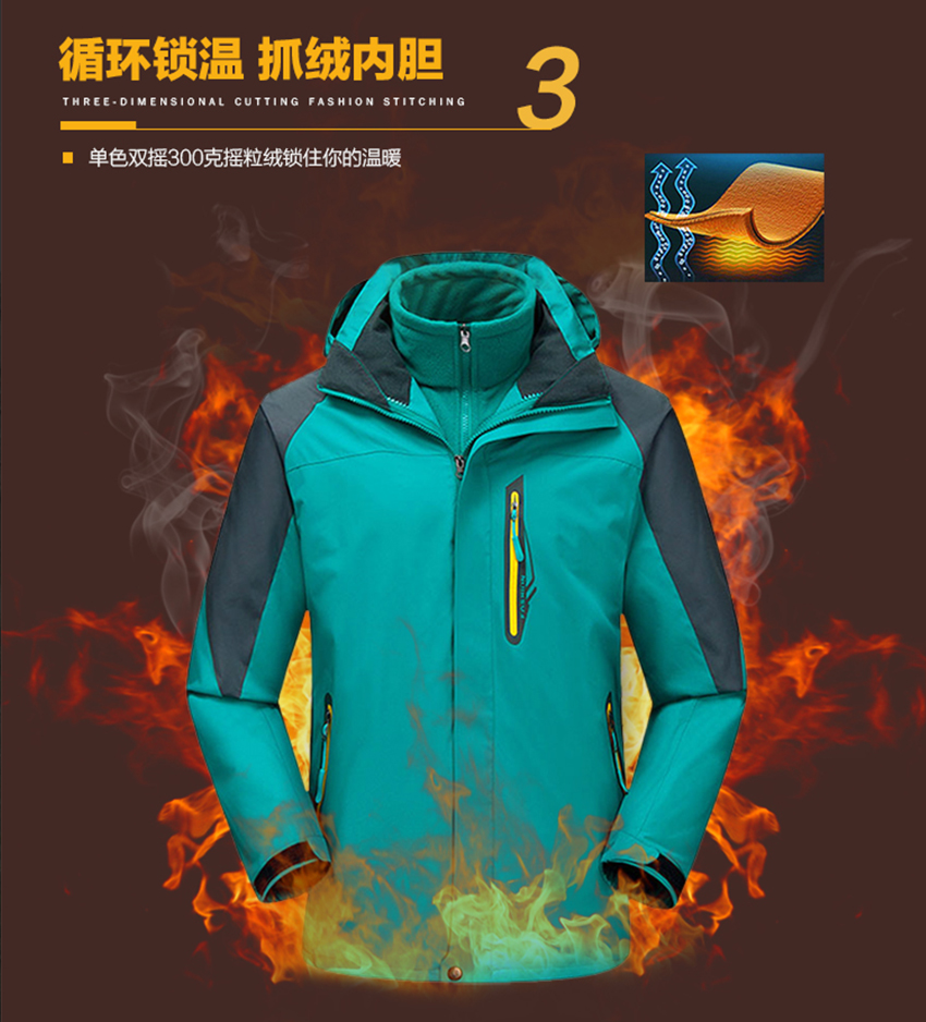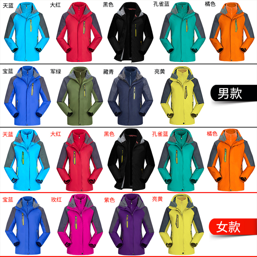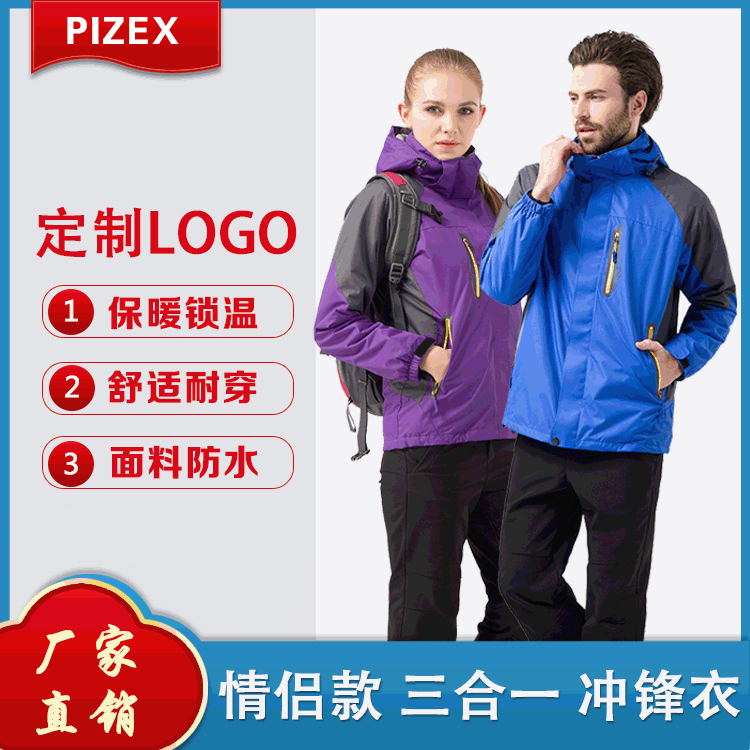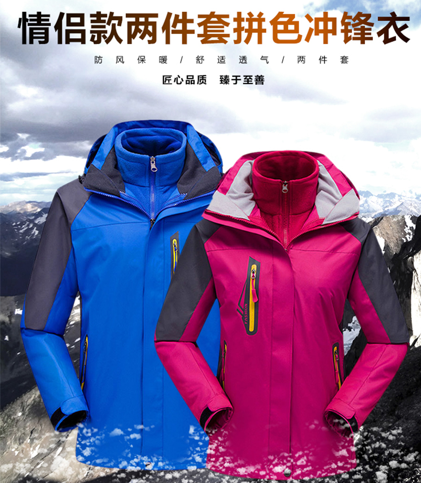 冬季情侣登山防风户外冲锋衣三合一可拆卸两件套滑雪服定制印LOGO