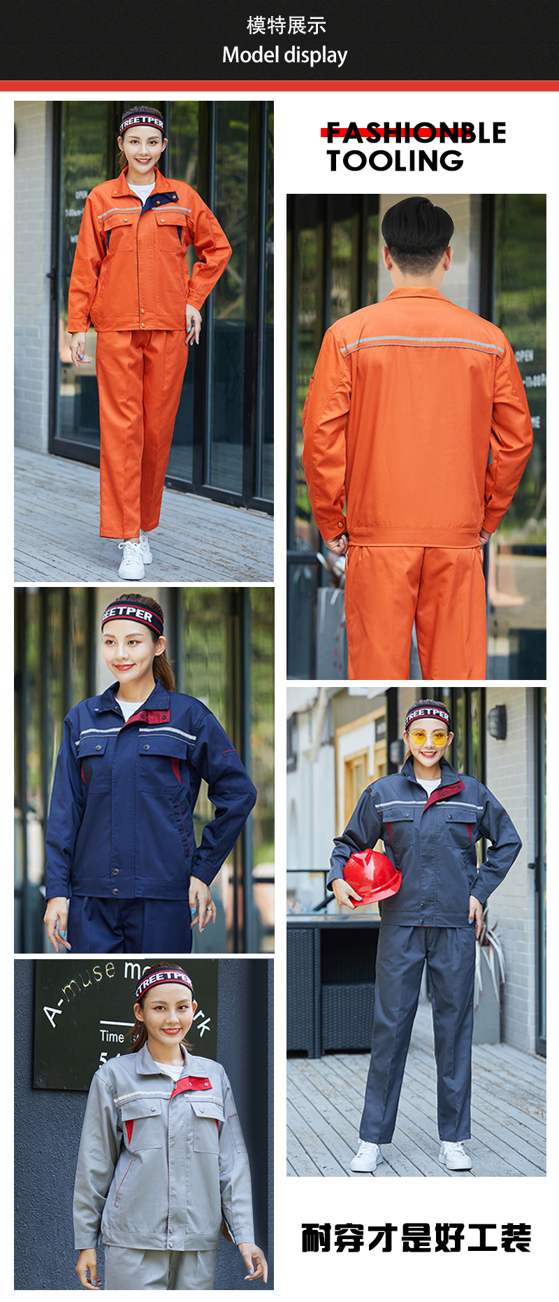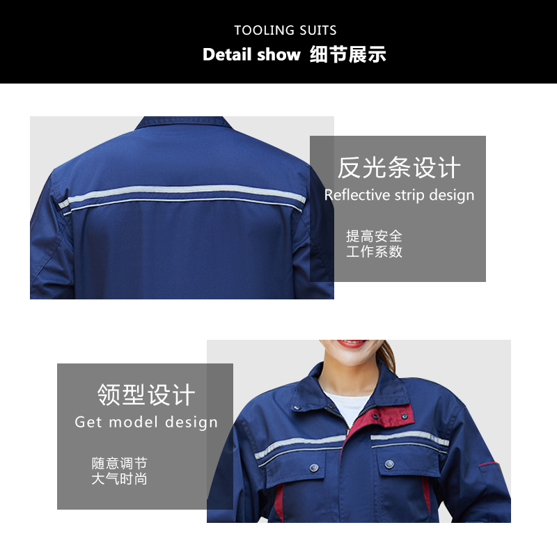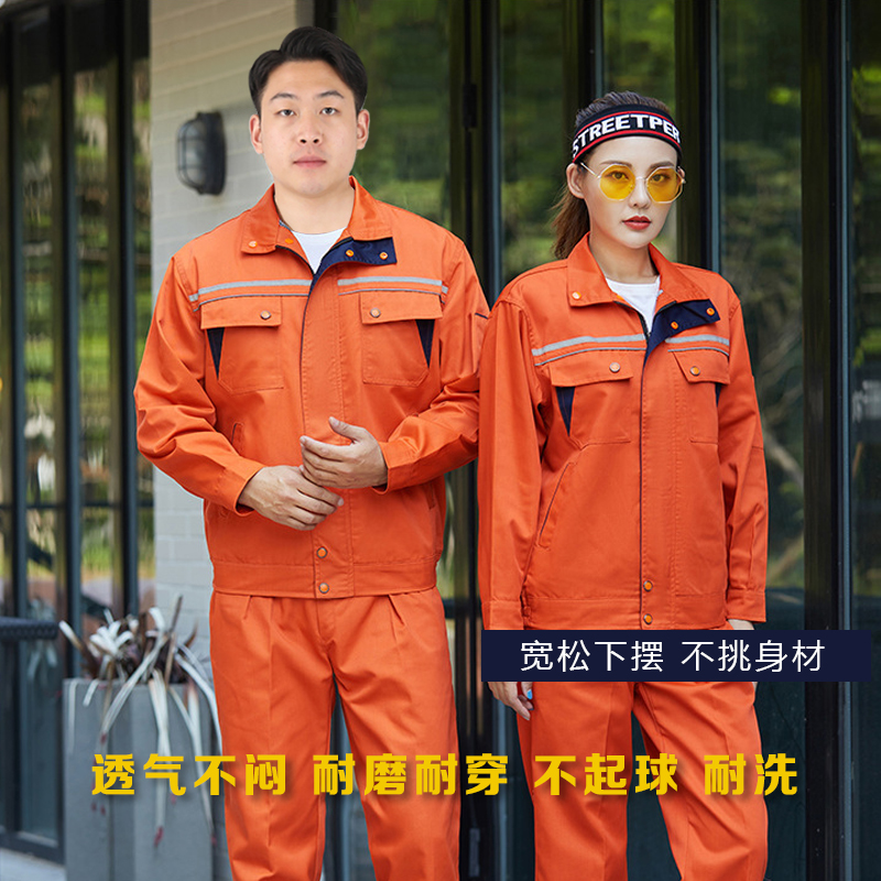 春秋长袖劳保服套装工程汽修厂服带反光条车间工作服定制LOGO印字