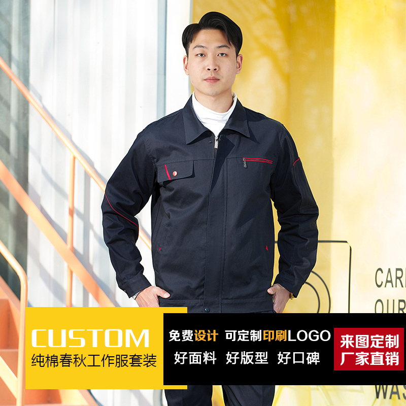 春秋季新款长袖工作服套装汽修车间电焊中石化纯棉工装可刺绣印字
